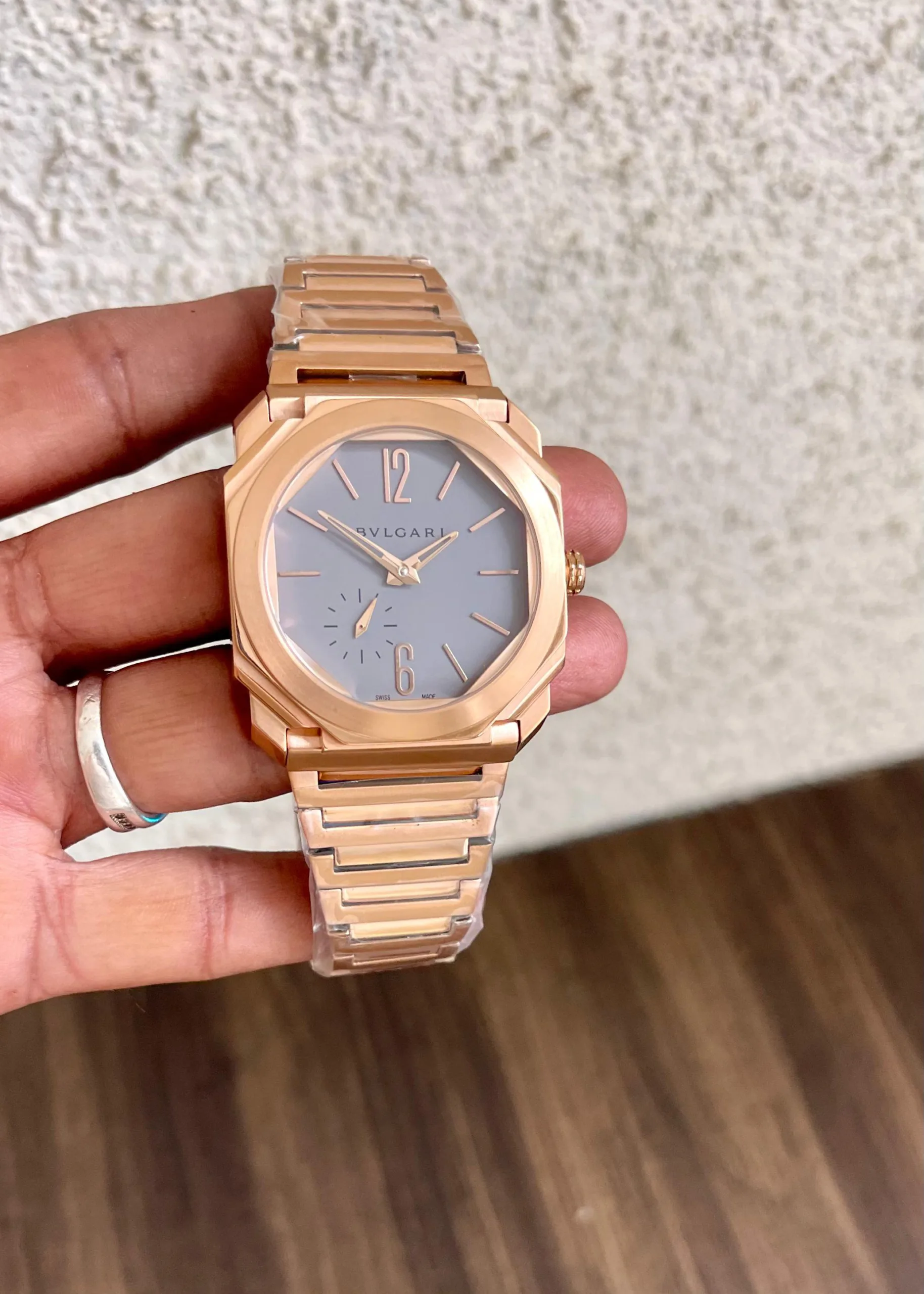 👉🏼 Features: Powered by original Japanese self-winding automatic machinery, Stainless-steel rosegold octogonal case with round bezel, Anti-reflective sapphire glass on brown dail with mini-second sub-dail, fastened by a stainless-steel rosegold chain with a butterfly clasp.