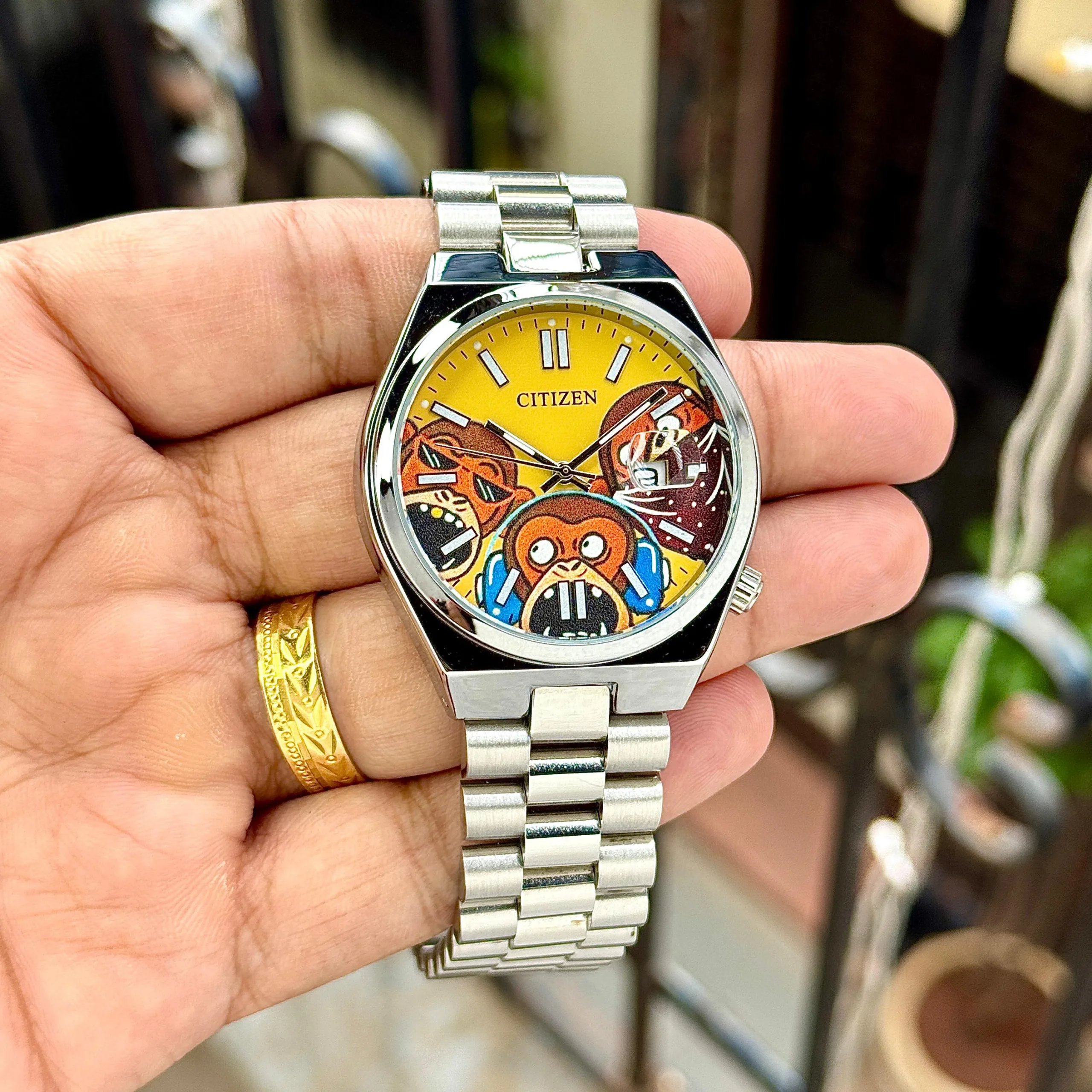 ➡️ Unique Hand-Painted “Wise Guys” Monkey Artwork Dial – Symbol of Fun & Rebellion