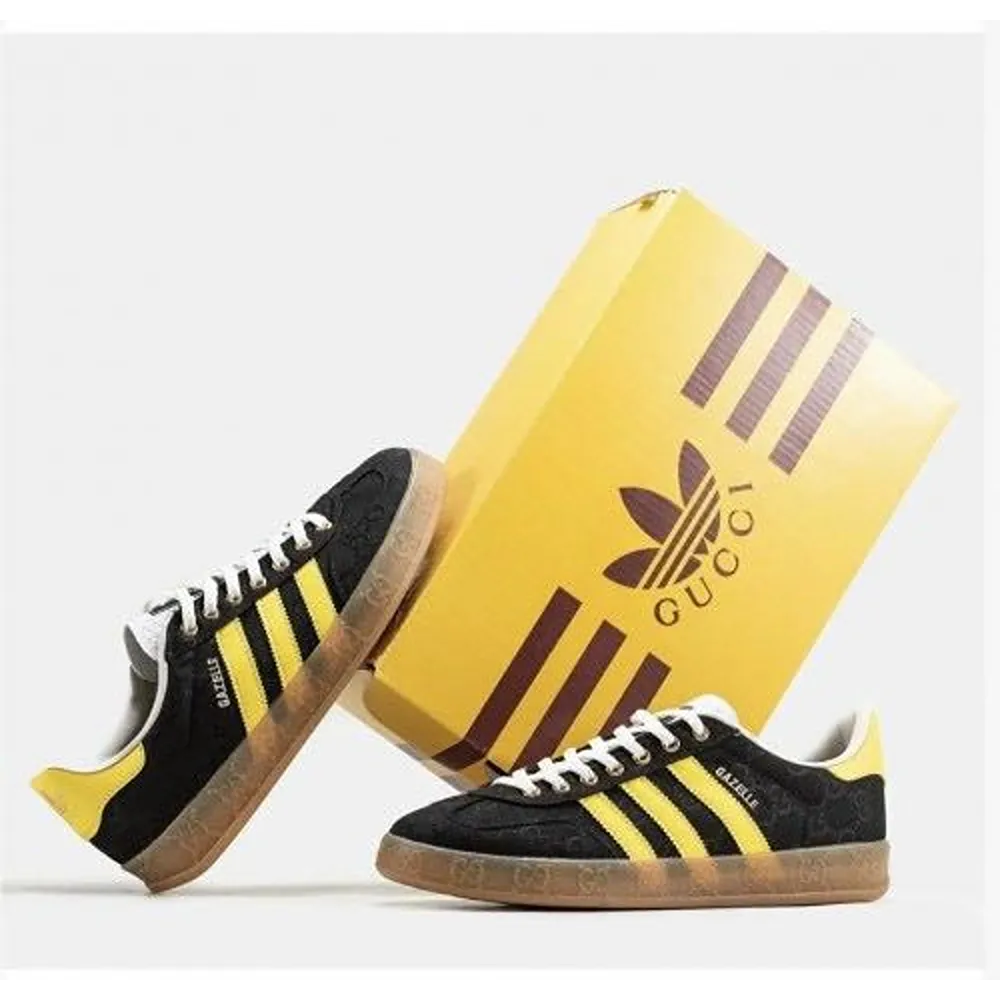 Classy Adidas X Gucci Gazelle Black Yellow Shoes