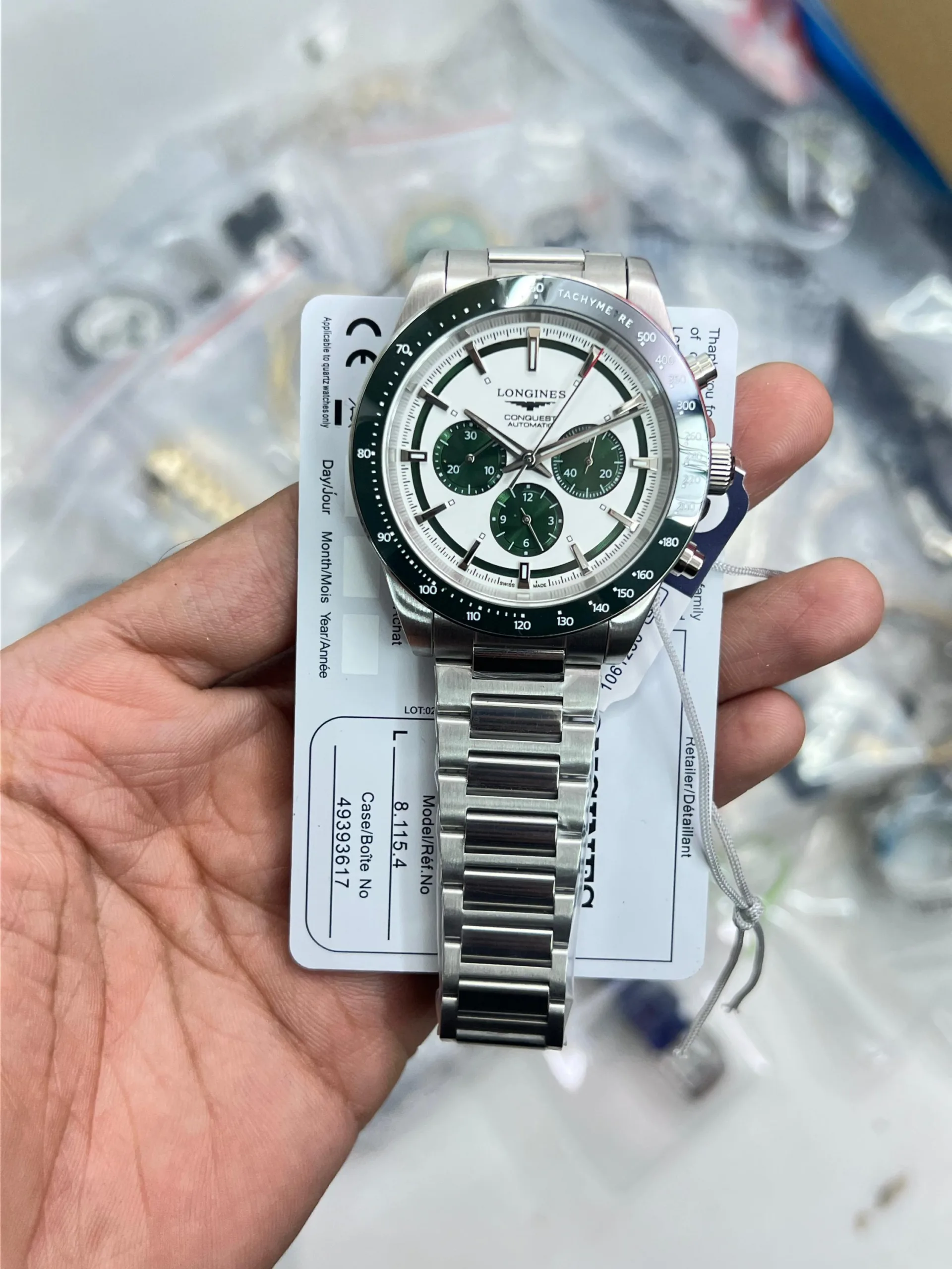 -Classic White & Green Dial with Working Chronograph, Sub Dials, Automatic Hand