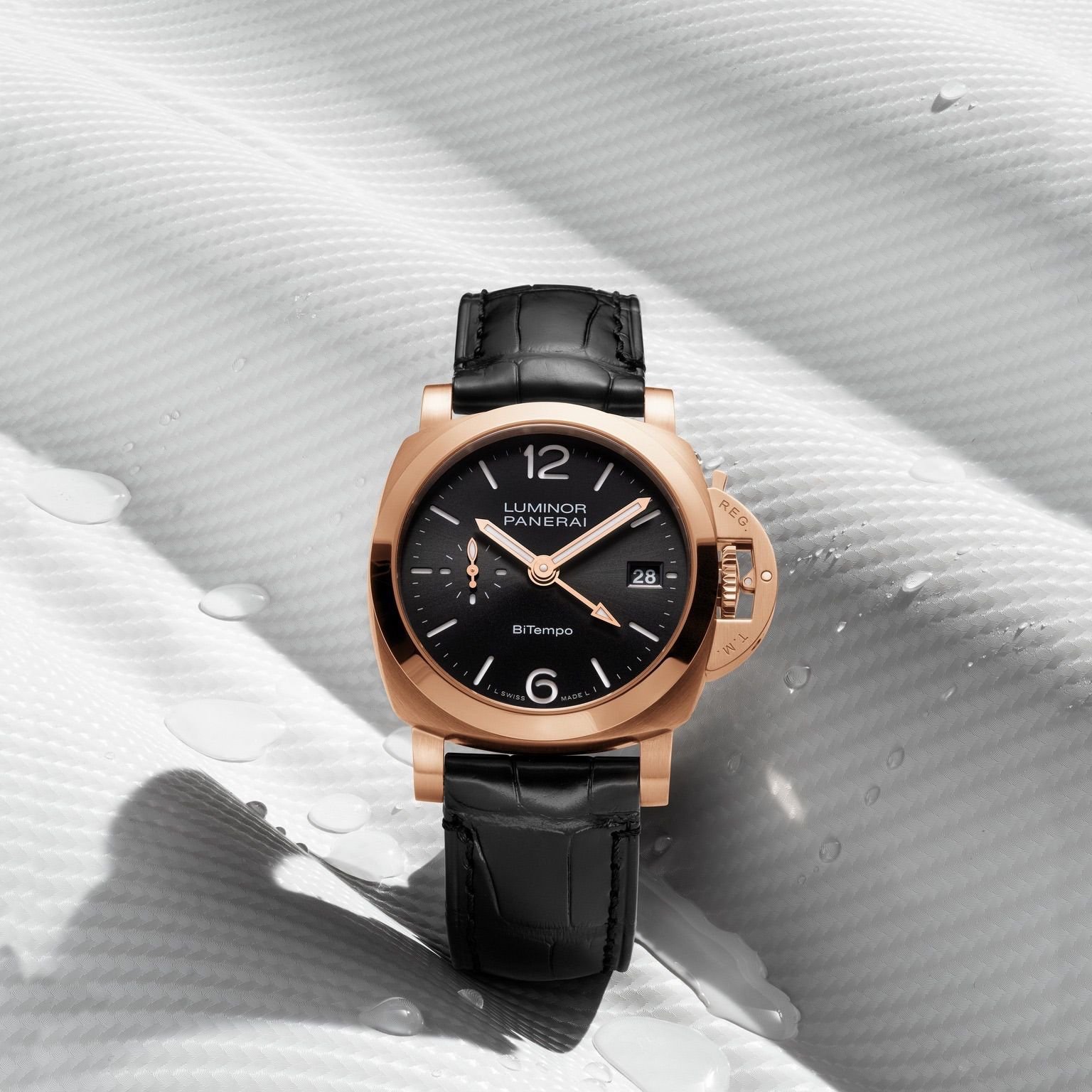 # 2mm thick oval shape crystal, finest quality Black leather Strap & Panerai Original Heavy Metal Lock