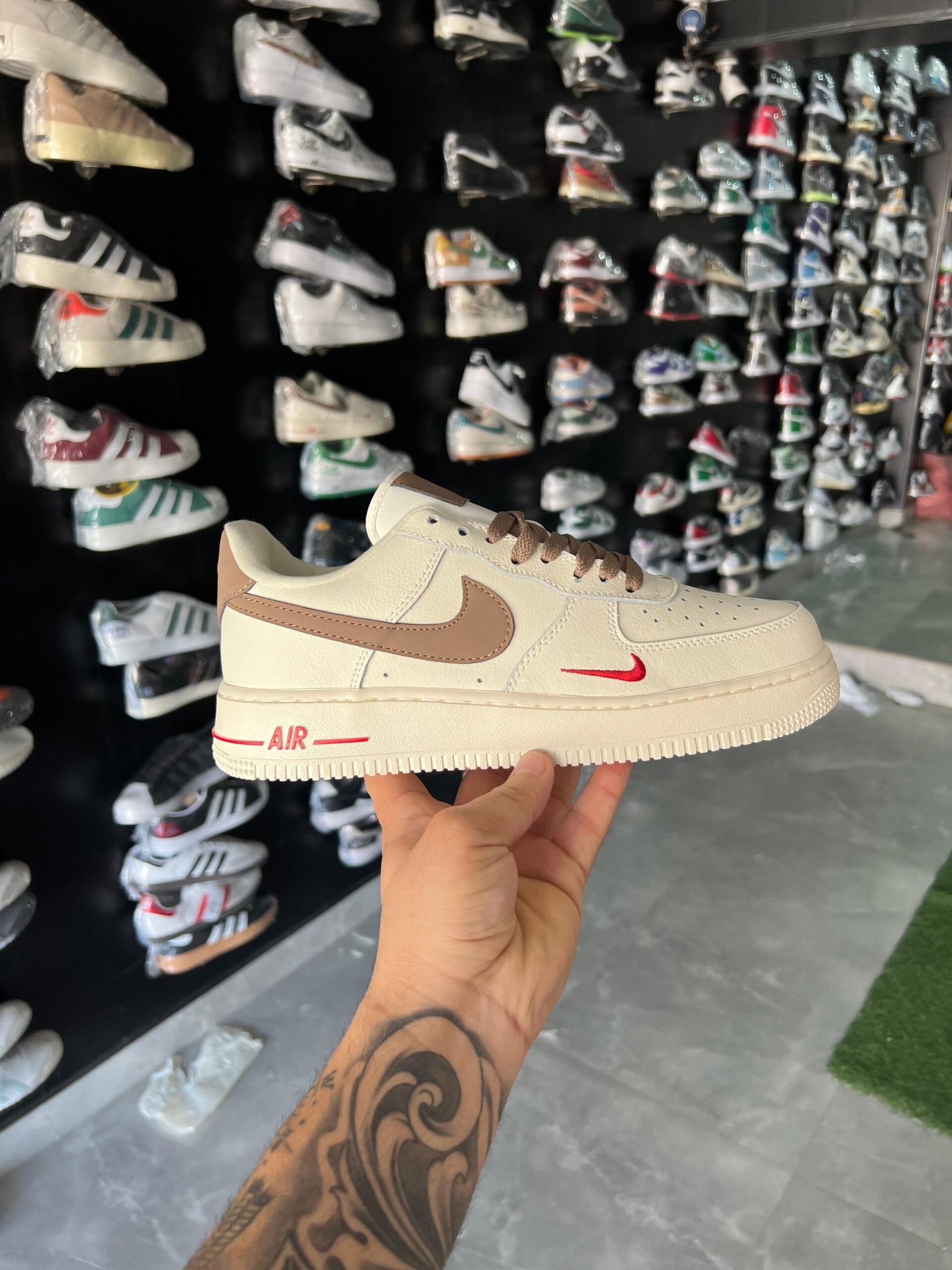 These are original Nike Air Force 1 sneakers, known for their quality and design.