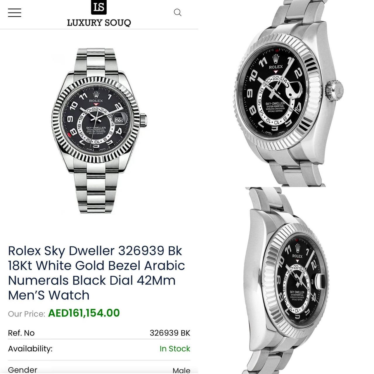✅ ROLEX SKY-DWELLER BLACK DIAL 18K WHITE GOLD OYSTER BRACELET AUTOMATIC MEN’S WATCH ✅