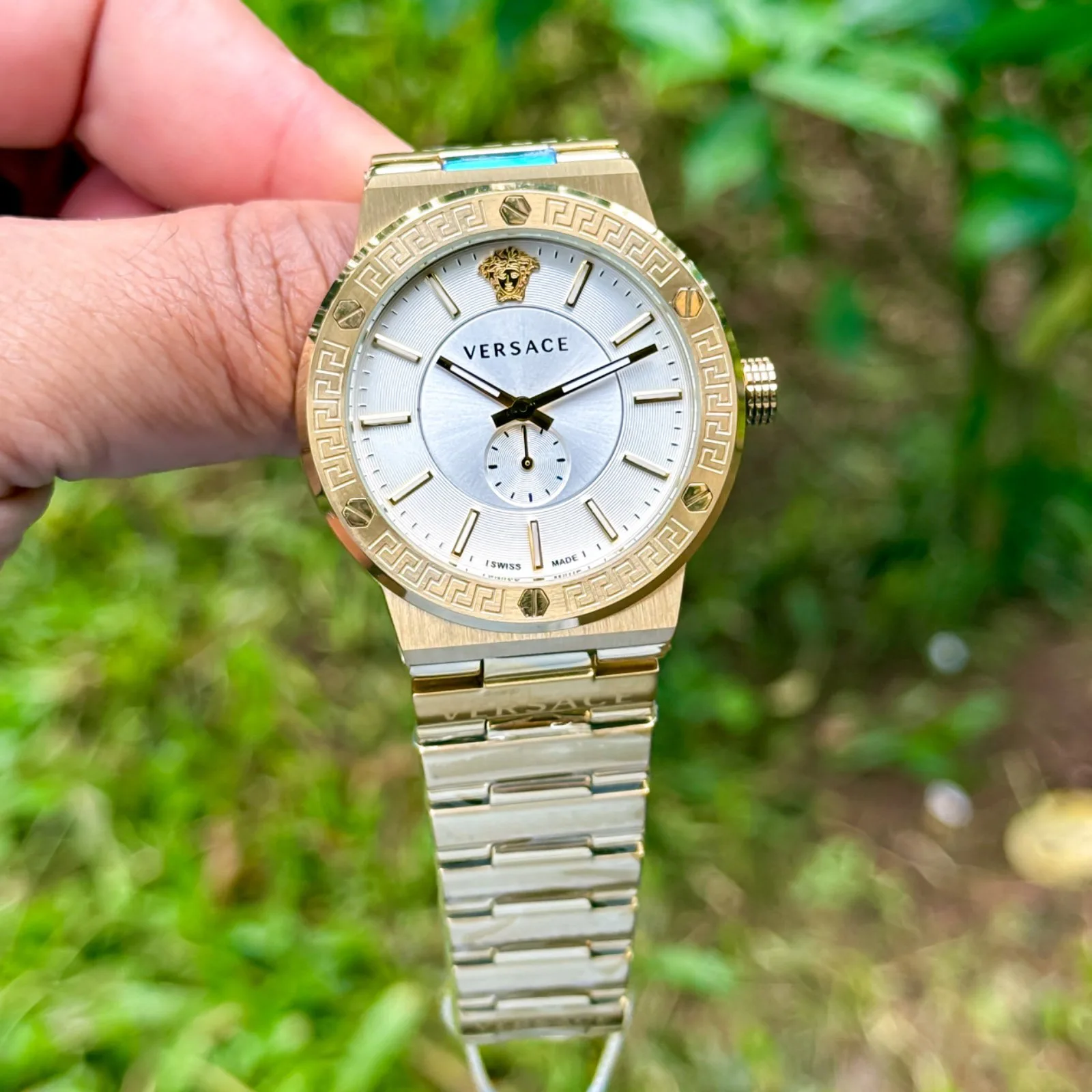 – Stainless steel Versace embossed Caseback & Linked Golden Bracelet with Original Lock